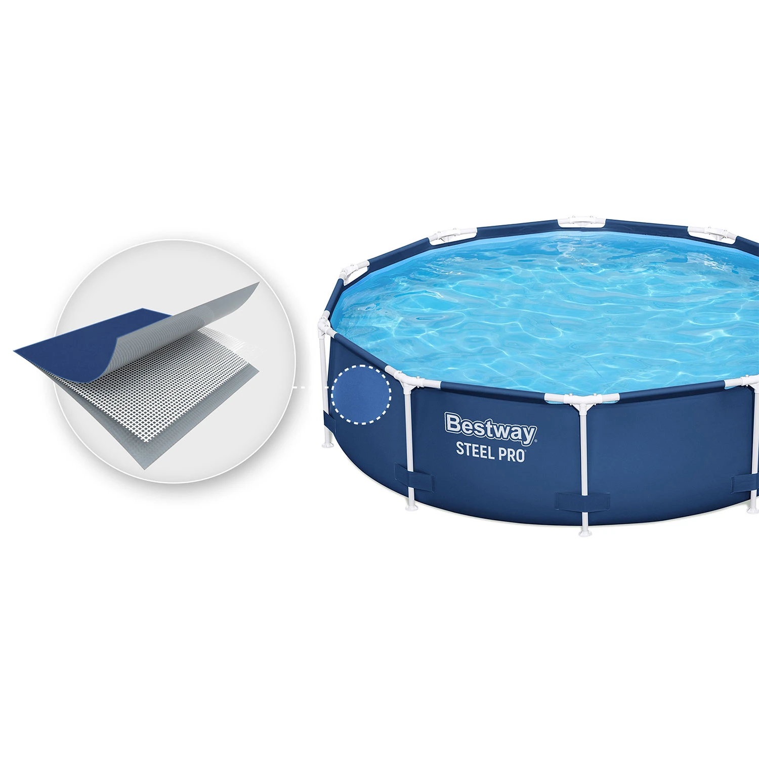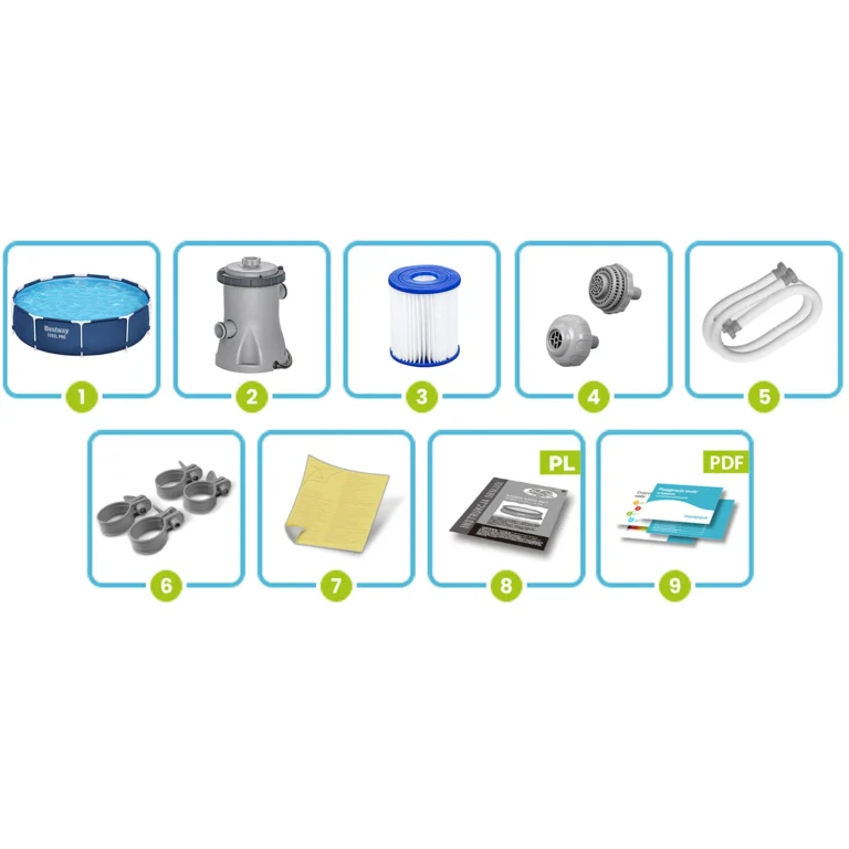 Vrsta bazena: okvir Premer (cm): 305 Višina (cm): 76 Prostornina (l): 4678 Priporočeno polnjenje (%): 90 Teža bazena (kg): 23 Predviden čas montaže (min): 30 Zmogljivost črpalke (l/h): 1249 Napajanje črpalke (V): 220-240 Moč črpalke (W): 16 Filter črpalke: I (#58093) Teža črpalke (kg): 2,1 Oblika bazena: okrogla Material rezervoarja: 3-slojni PVC Tritech Velikost: ~ 305 cm Proizvajalec: Bestway Koda proizvajalca: 56679 cistimoskladiste25