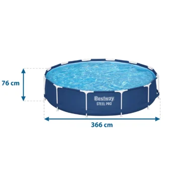 Iščete popoln vrtni bazen, ki bo nudil sprostitev za vso družino, ne da bi zavzel preveč prostora? Bestway Steel Pro 366 x 76 cm (56681) je odlična izbira za vse, ki cenijo praktičnost, hitro montažo in trdno kakovost. Zaradi kompaktnih dimenzij je primeren tudi za najmanjši vrt, njegova prostornina več kot 6000 litrov vode pa omogoča sproščeno plavanje in zabavo z družino in prijatelji. Izberite zaupanja vrednega proizvajalca – Bestway – in spremenite svoj vrt v poletno oazo sprostitve!