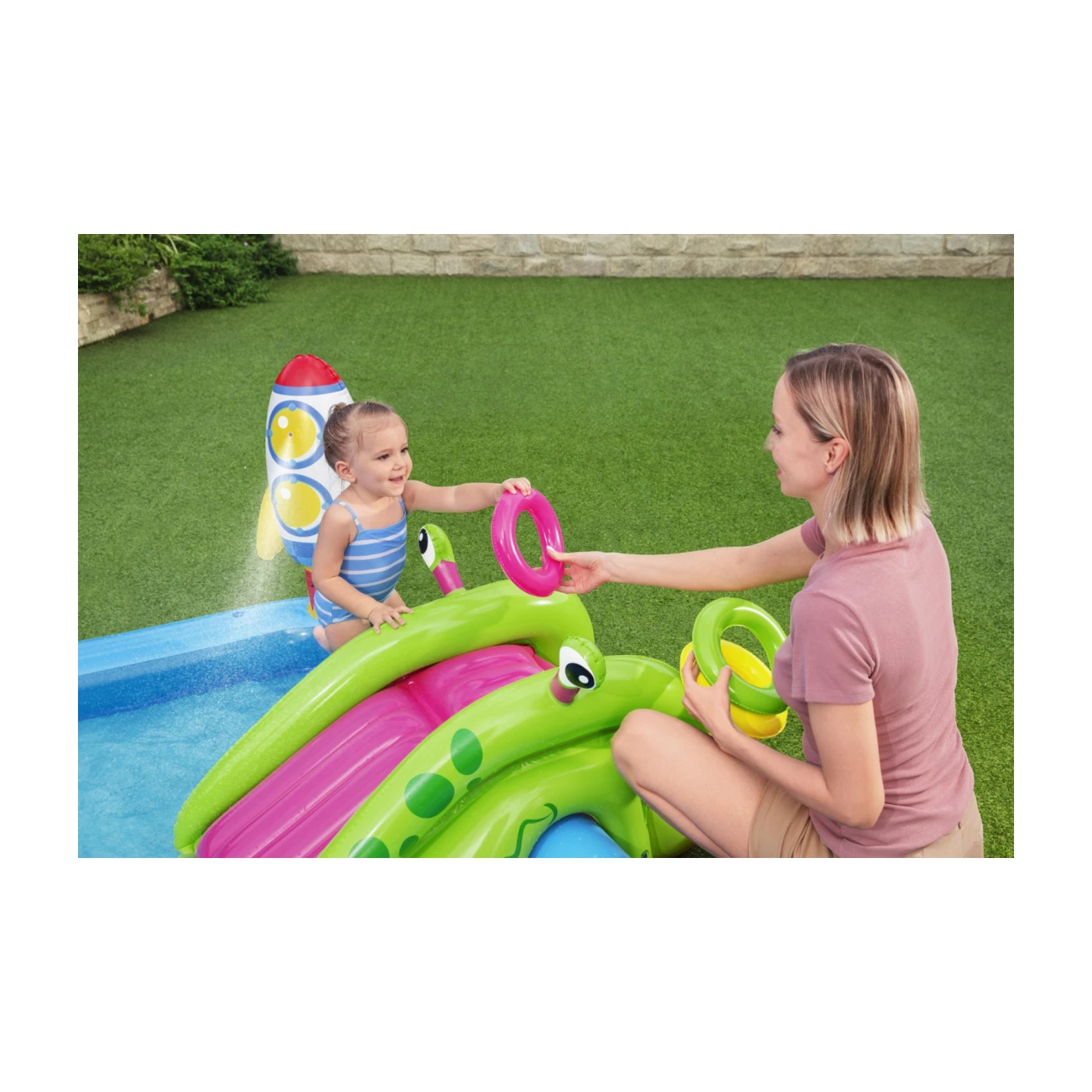 ️ Priložen komplet za popravilo napihljivega bazena, priporočena prostornina polnjenja do 348 l, primeren za otroke, stare 3 leta in več