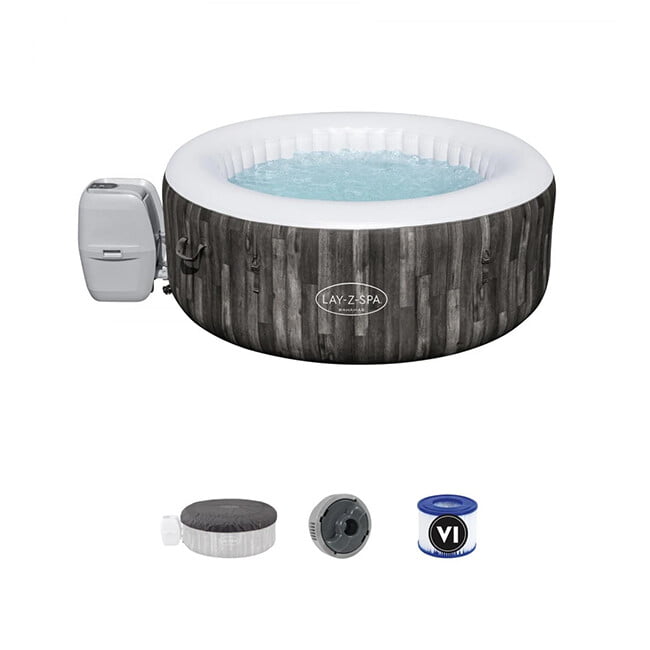 | – masažna kad, – črpalka z vgrajenim grelcem , – elektronska plošča, – zgornji pokrov z dodatno termično in zračno komoro za preprečevanje ohlajanja vode, – plavajoči dozator kemikalij (58210), – VI filter (58323), – podroben DVD priročnik za vzdrževanje in konfiguracijo masažne kadi. |