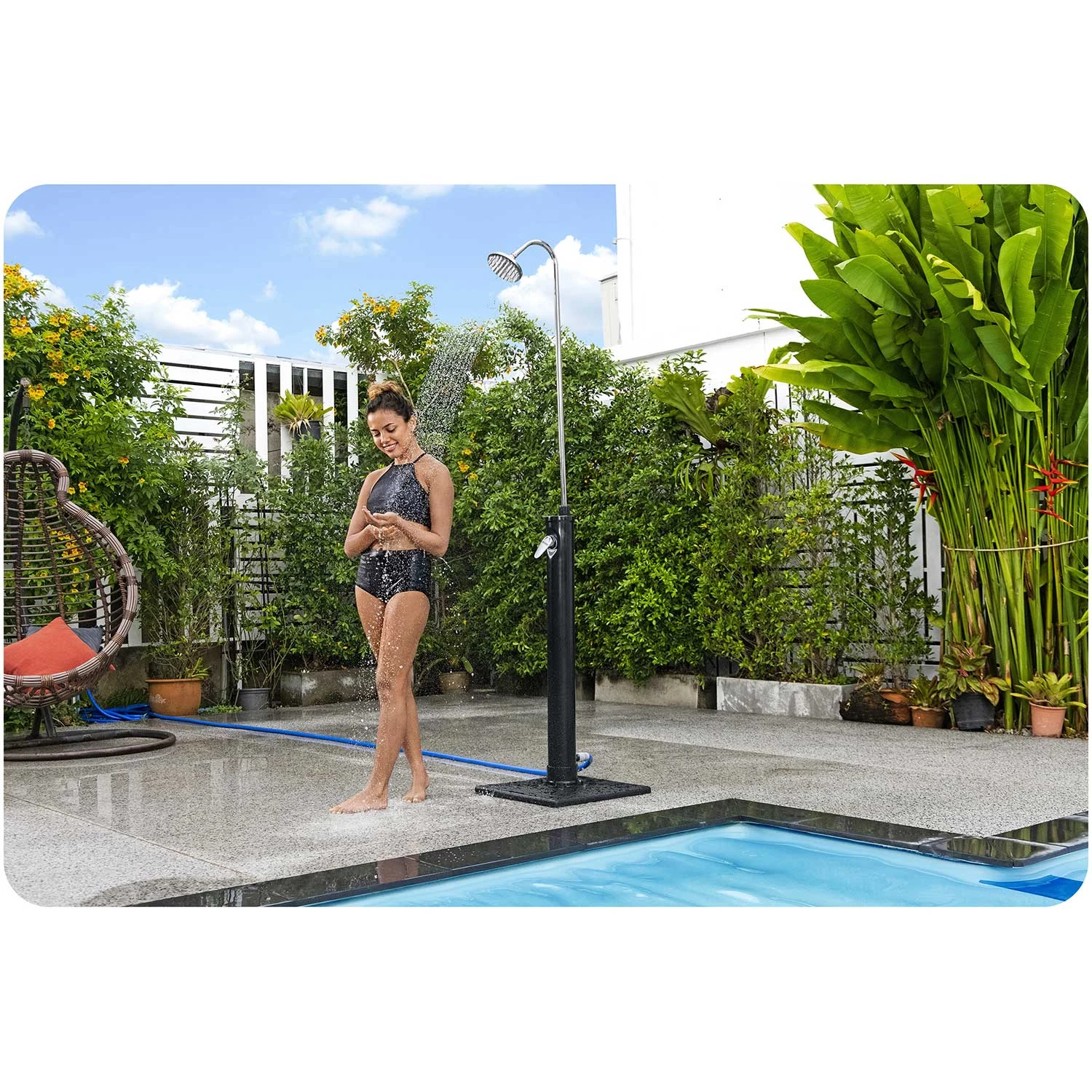 Vrtni tuš na sončno energijo Bestway je prava najdba za ljudi, ki imajo na svojem vrtu bazen.