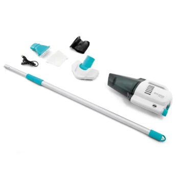 Ena ključnih prednosti modela INTEX ZR100 je teleskopska palica dolžine 239 cm. Takšna palica uporabniku omogoča enostaven doseg vseh kotičkov bazena, vključno s težko dostopnimi mesti na robovih in dnu. Adapter, ki se uporablja v ročaju, omogoča nastavitev palic na različne dolžine. Poleg tega je sesalnik za jacuzzi opremljen z dvema zamenljivima krtačama, ki ju je mogoče prilagoditi vrsti in intenzivnosti umazanije, kar zagotavlja vsestransko čiščenje. Varnost uporabe zagotavlja funkcija samodejnega izklopa, ki ščiti napravo pred pregrevanjem, in razred tesnosti IPX8, ki zagotavlja popolno vodoodpornost in varno uporabo pod vodo. Komplet vključuje tudi dve filtrirni mrežici, ki učinkovito zbirata tako majhne kot velike nečistoče, ter USB kabel za polnjenje baterije. Izdelek je kot nalašč za bazene in jacuzzije z največjo dolžino ali širino 549 cm.