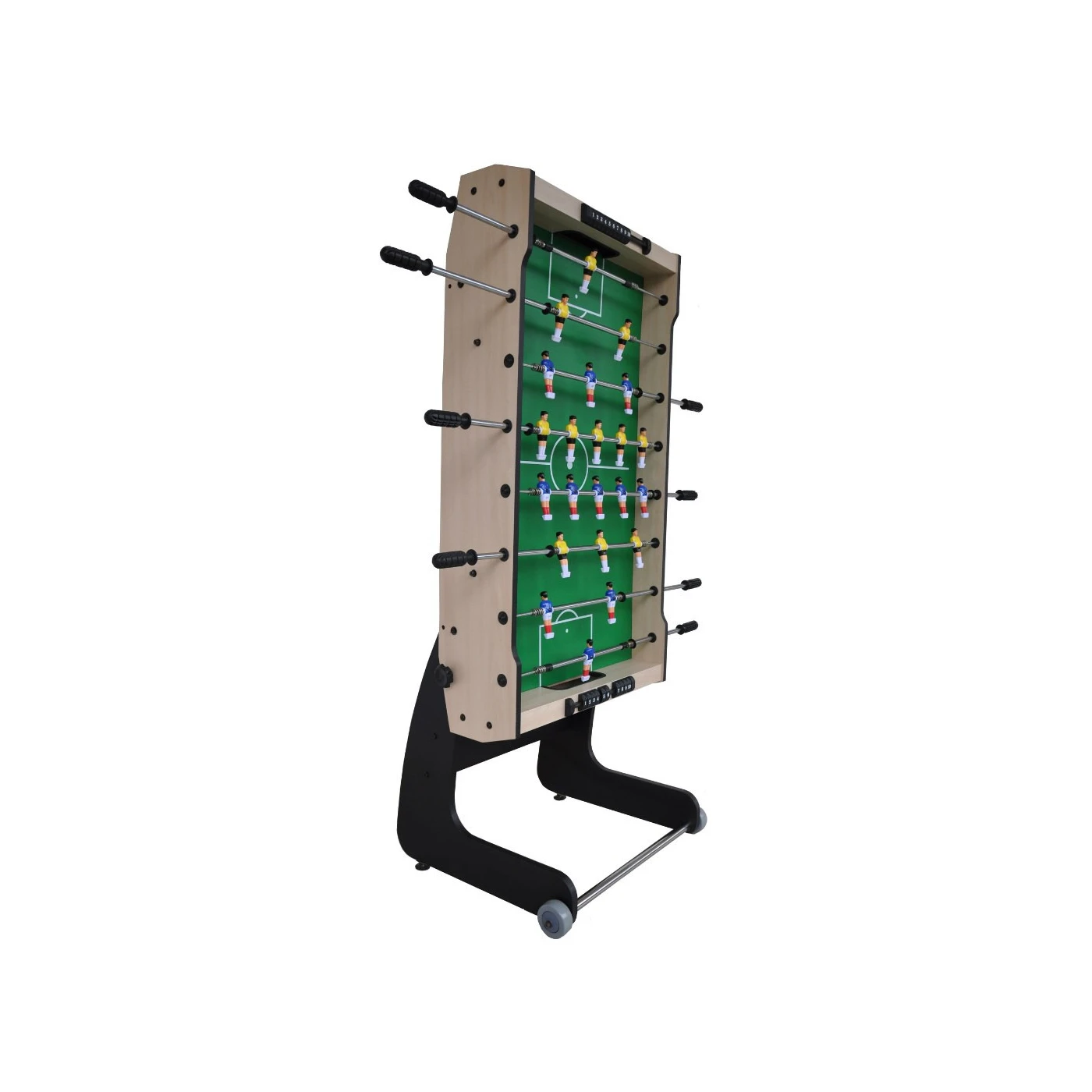 MDF plošča, iz katere je izdelana miza za notranji nogomet, je zelo trpežen in vzdržljiv material , ki omogoča brezskrbno igro. Poleg tega je plošča prekrita s fleksibilnim laminatom , odpornim na praske in manjše poškodbe. Ta model mize se lahko zloži v navpični položaj , zato zavzame zelo malo prostora, ko ni v uporabi. Ima tudi kolesa za lažji transport na izbrano lokacijo. Stabilna konstrukcija temelji na trdnih nogah, ojačanih s prečkami . Komplet vključuje 2 dobro uravnoteženi žogi .