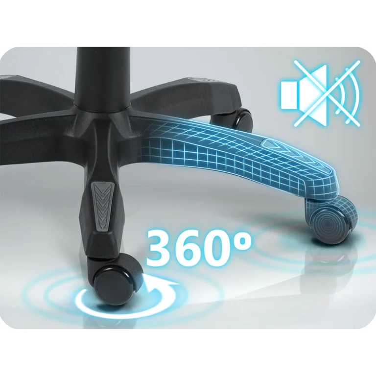 Trden okvir zagotavlja izjemno stabilnost in vzdržljivost. Tiha, prevlečena 360° kolesa omogočajo gladko in brezšumno gibanje brez praskanja tal.