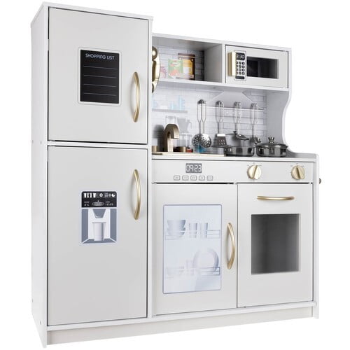 - RAZVIJTE DOMIŠLJIJO – Ta lesena kuhinja ne ponuja le zabave, temveč razvija tudi domišljijo in spodbuja ustvarjalno razmišljanje, uči timskega dela in izboljšuje socialne in integracijske veščine; povečuje ročne in igralske spretnosti. Lahko postane navdih za otroka in prispeva k uspehu bodočega kuharja.