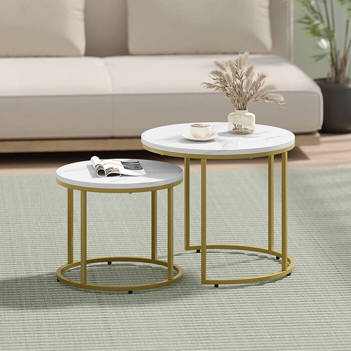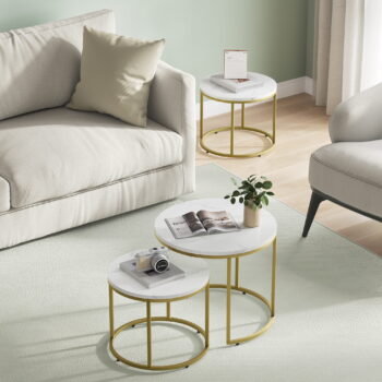 Manjšo mizo lahko pospravimo pod večjo in tako prihranimo prostor v dnevni sobi.