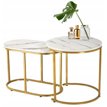 - Dimenzije manjše mize: 43 x 35 cm (premer x višina)