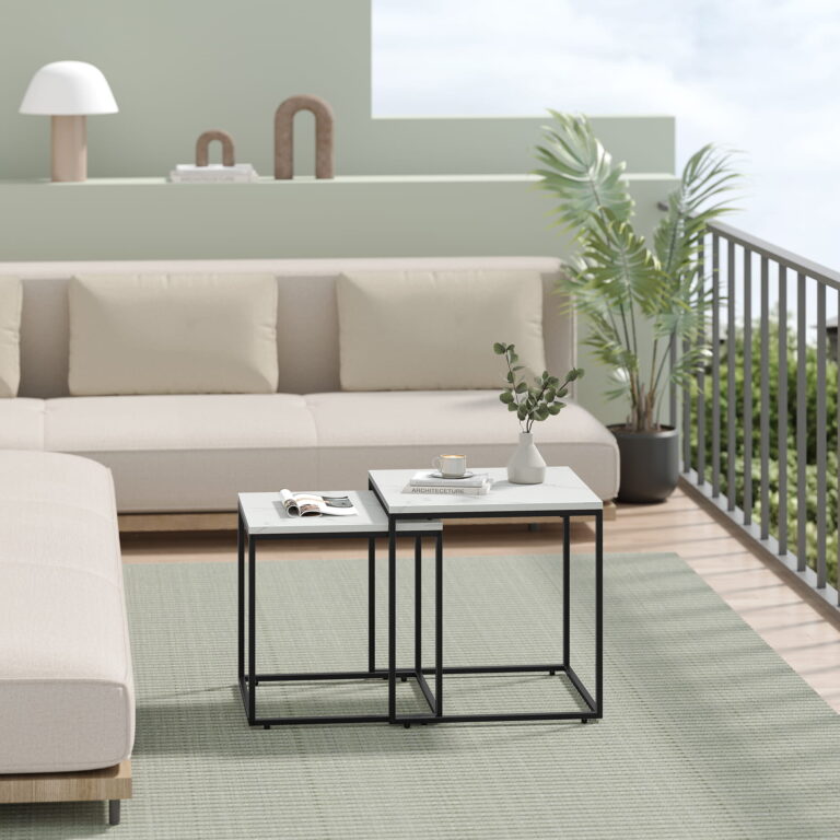 - Dimenzije manjše mize: 45 x 45 x 45,5 cm (širina x globina x višina)