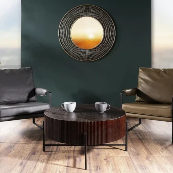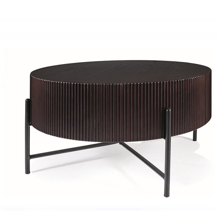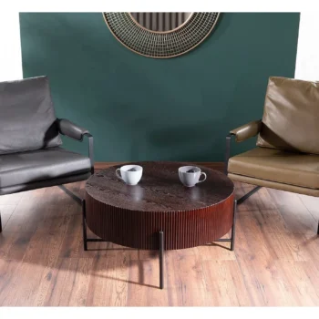 Klubska mizica Tuca je eleganten in funkcionalen dodatek vaši dnevni sobi ali pisarni. Ima okroglo obliko, z zgornjim delom iz MDF z naravnim jesenovim furnirjem v temni orehovem barvi, kar ji daje prefinjen videz. Kovinska konstrukcija v mat črni barvi zagotavlja stabilnost in vzdržljivost. Ključne lastnosti: