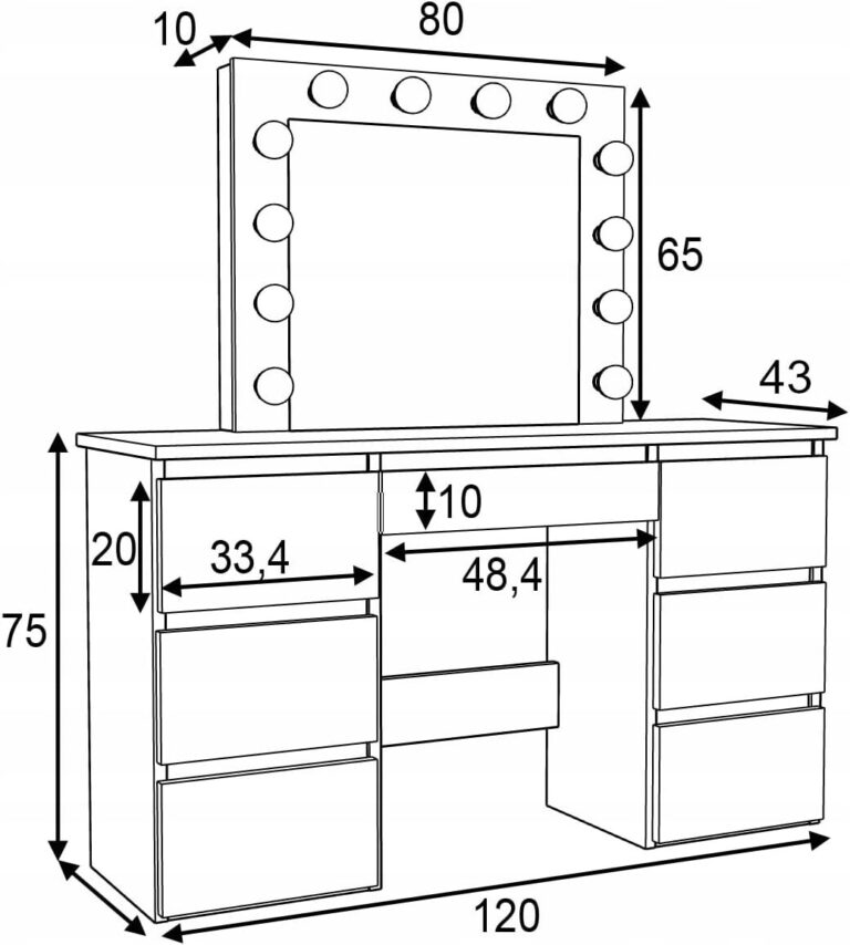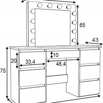 Toaletna mizica – Beti XL z LED lučkami in 7 predali
