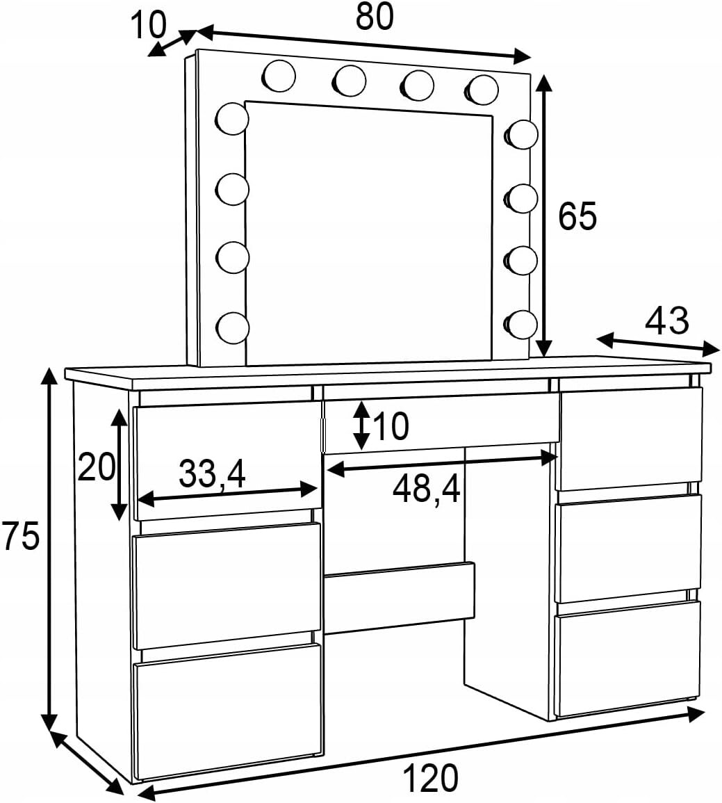 Toaletna mizica – Beti XL z LED lučkami in 7 predali