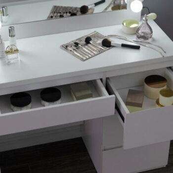 Elegantna estetika – mat bela barva in prefinjena oblika naredita to toaletno mizico eleganten dodatek k vsaki sobi.