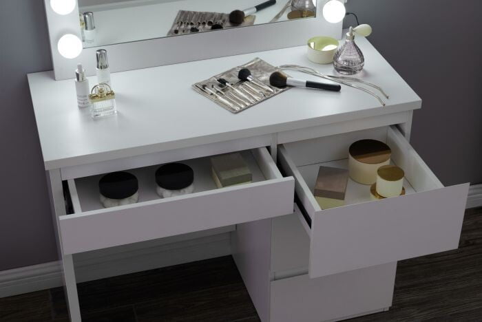 Organiziran prostor – štirje prostorni predali omogočajo urejeno shranjevanje vseh vaših kozmetičnih izdelkov in pripomočkov.