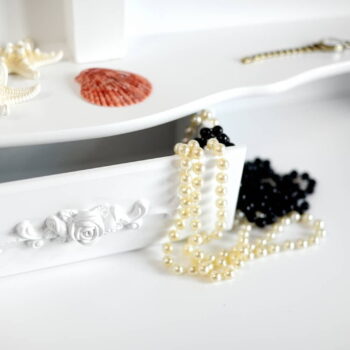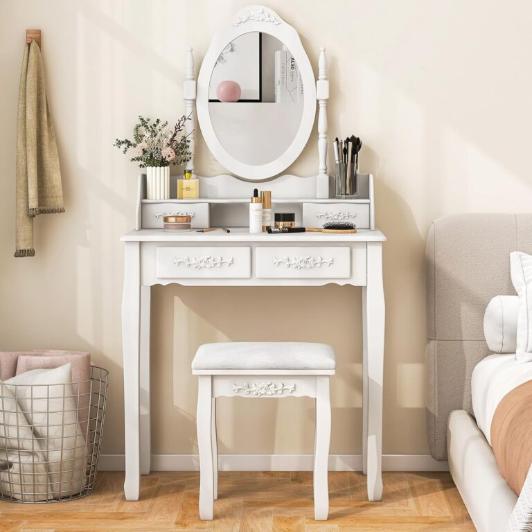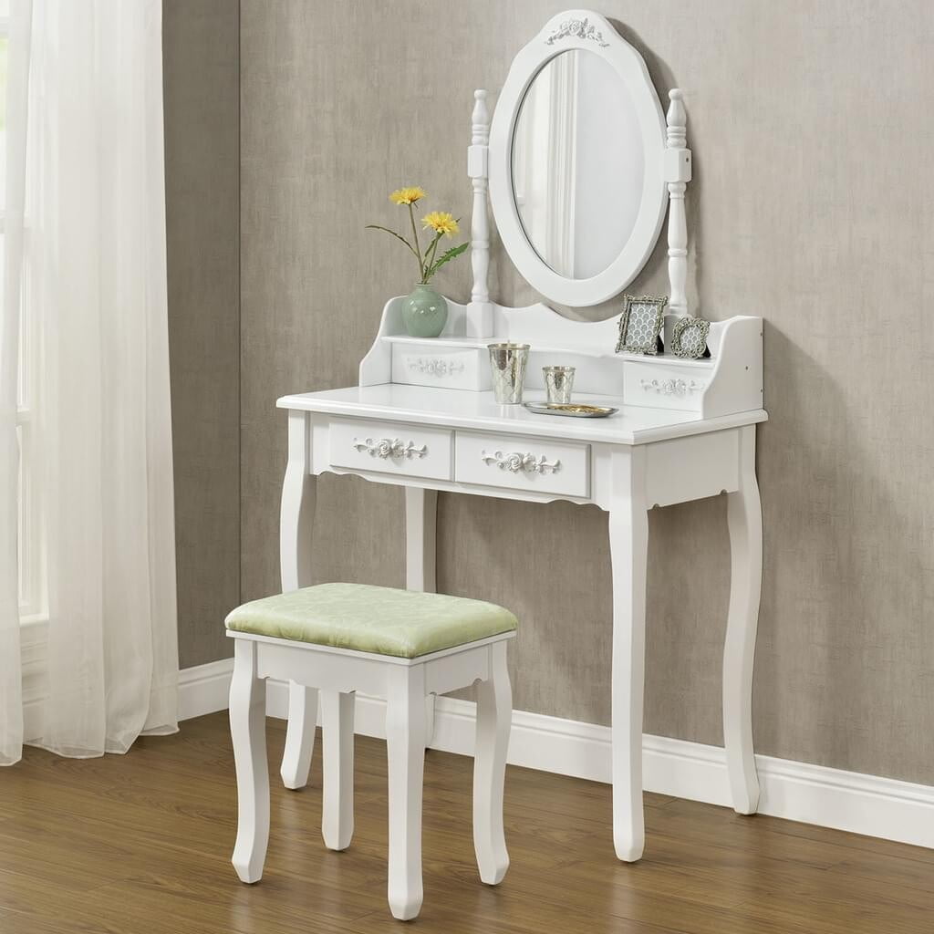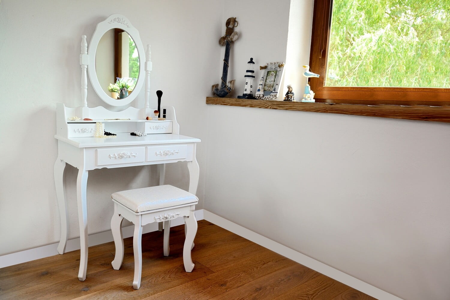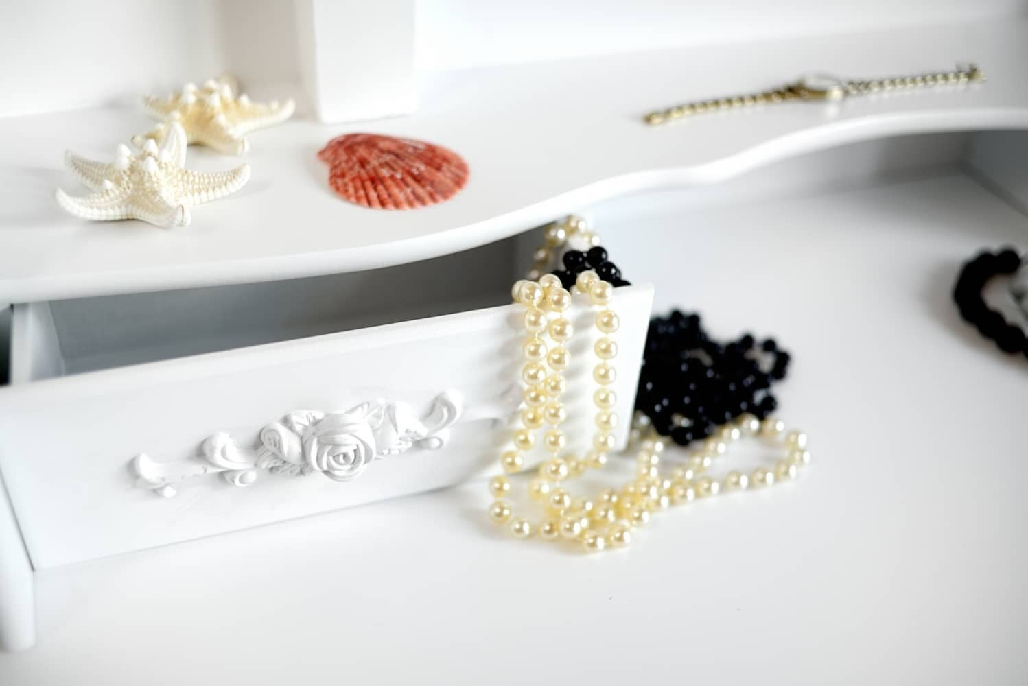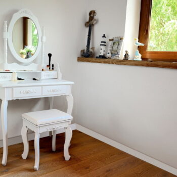 • Toaletna mizica v elegantnem belem slogu Shabby Chic