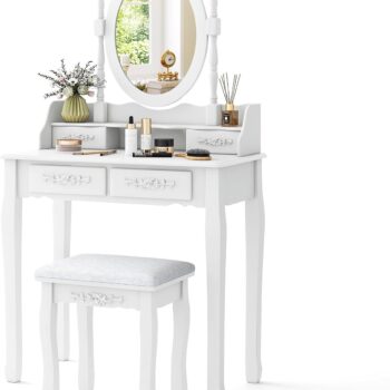 Pod mizno ploščo sta dva prostorna predala , ob strani pa sta nameščena še dva manjša predala – idealna za organizacijo ličil, nakita in majhnih predmetov, ki jih želite imeti pri roki.