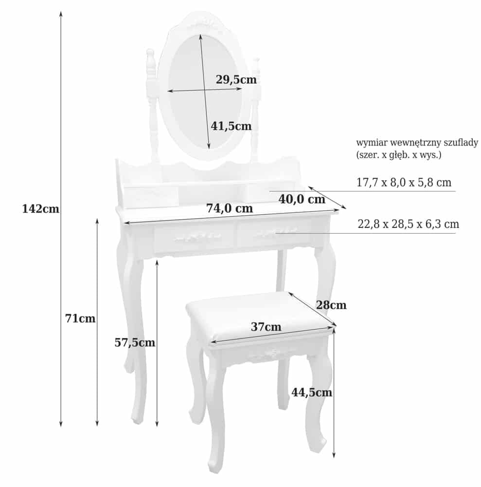 DOSTAVA ISTEGA DNE PO NAROČILU Toaletna mizica LISA izdelana v slogu Shabby Chic Komplet vključuje tudi udoben stol ✅ CE certifikat Dimenzije: 74 cm dolžina x 142 cm višina x 40 cm globina